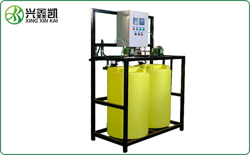 全自動加藥裝置主要有溶液箱、計量泵、過濾器、電磁閥、止回閥、水位表、壓力表、控制柜、安裝平臺等組成一體化安裝在一個底座上。